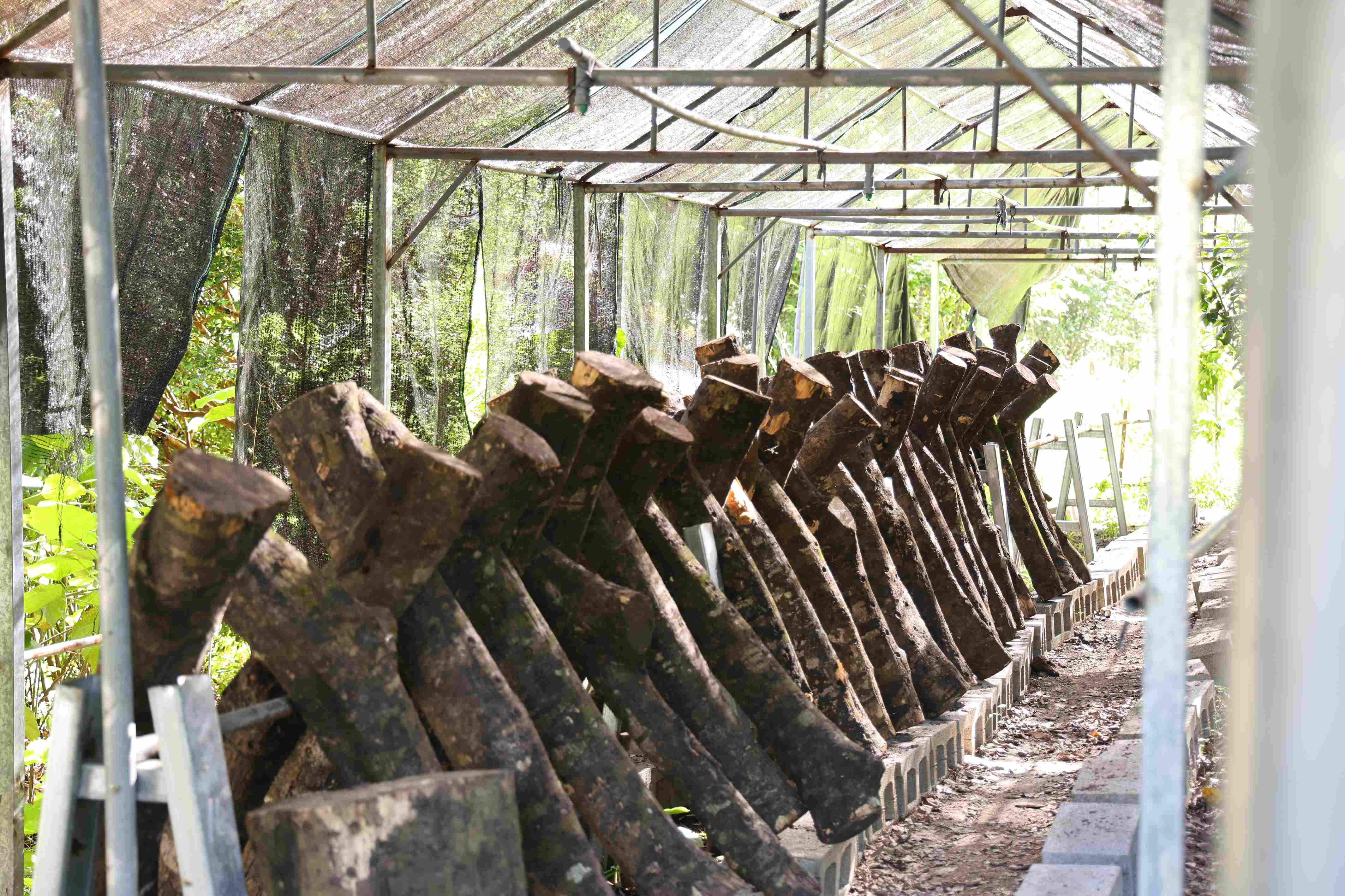 香菇園的段木香菇形狀獨特且生長自然,農場的香菇栽培融入自然友善農法,並且與農場整體的療癒與環境循環理念相呼應。香菇園也成為農場課程和生態系統中的重要部分,為農場帶來多樣的農作體驗與療癒價值。