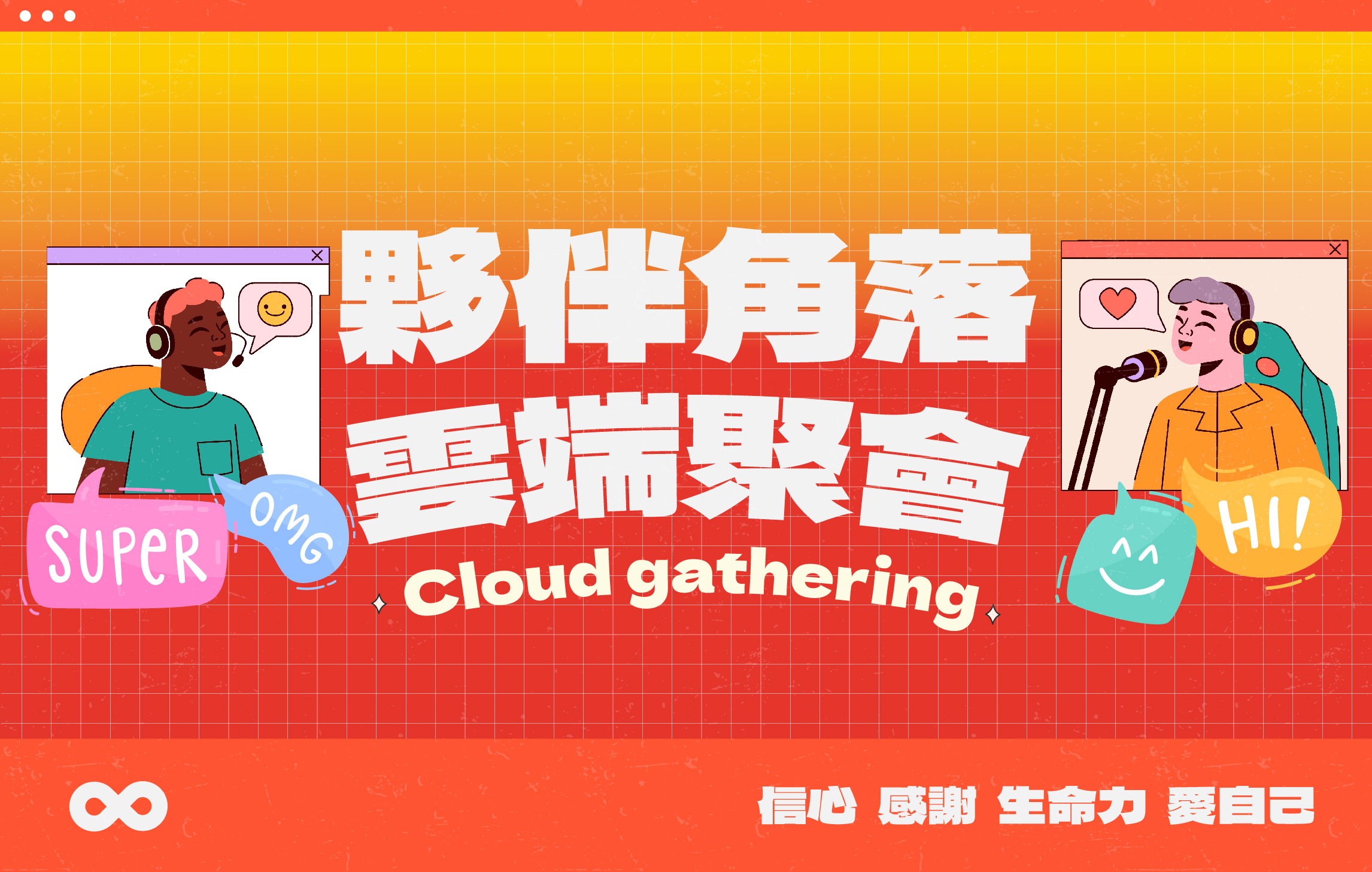 2.活動當天,19:45連線測試。進入聊天室時,工作者會依mail確認身分。